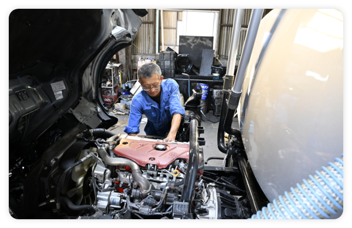 当社は1973年の創業以来、大型貨物車両の整備や福祉車両の製造を通じて、社会の基盤である「安全」と「安心」を支えてきました。私たちの仕事は、目立つことは少ないかもしれませんが、人々の生活を影で支える重要な役割を担っています。物流が滞りなく進むために、そして福祉車両を必要とする方々が安心して暮らせるために、私たちは全力で取り組んでいます。