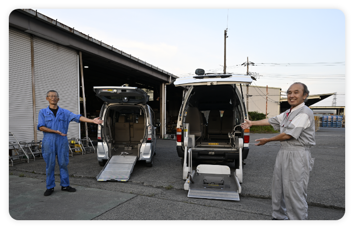 成長し続ける私たちは、常に技術を磨き、変化する社会のニーズに応え続けます。福祉車両の製造など、新たな挑戦にも果敢に取り組み、お客様に最適なサービスを提供します。変わり続ける時代の中で、私たちは挑戦を恐れず、共に成長し続けることを約束します。